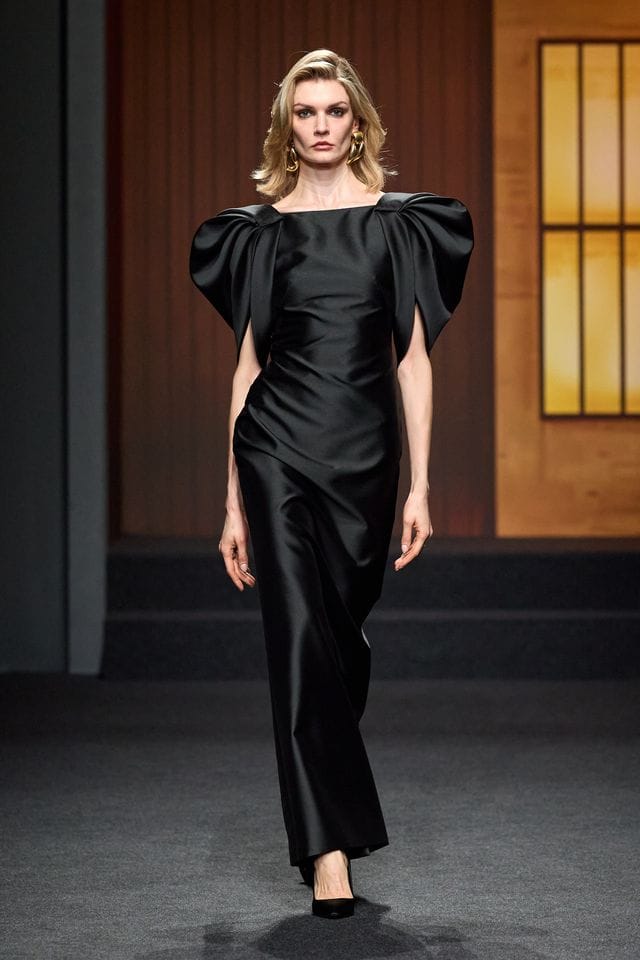 obliquo che rimbalza su vetro e acciaio, rendendo ogni cosa allo stesso tempo moderna e antica, severa e viva. È la luce che dà vita alla collezione Autunno/Inverno 2026 di Luisa Spagnoli, disegnata da Nicoletta Spagnoli, terza generazione del marchio perugino.