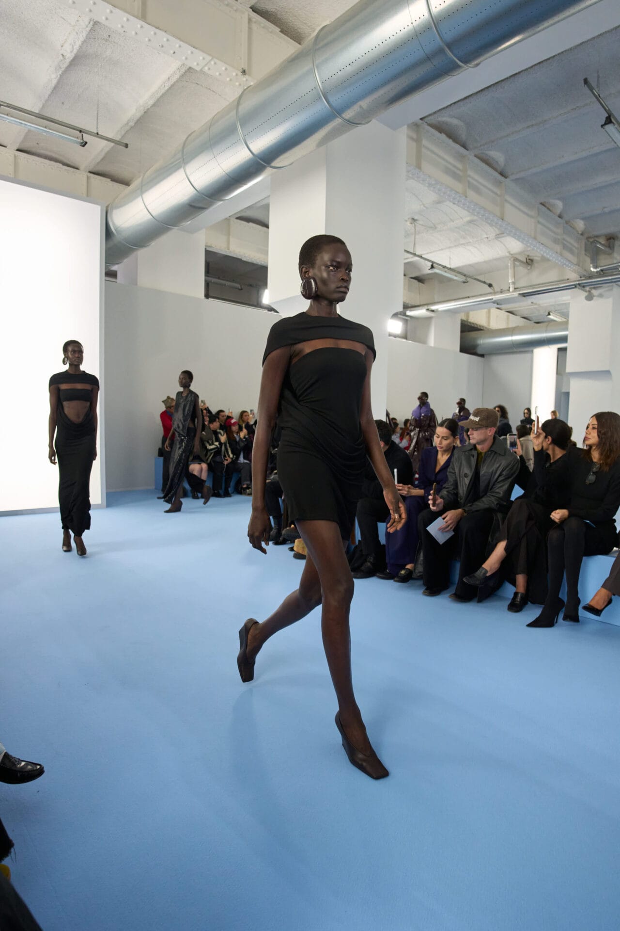 di svelare il corpo, trasformando la pelle stessa in un effetto grafico e materico, declinato con estrema precisione in maglieria e jersey che accarezzano la silhouette.